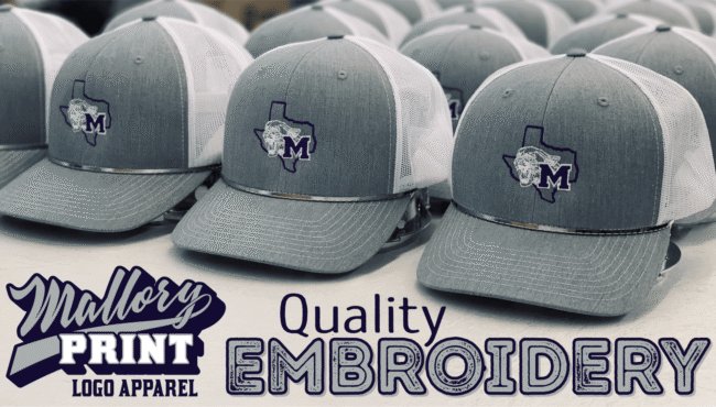 If you’re interested in creating T‑shirts, banners, stickers, or hats for your next event, let the staff at Mallory Print help! We offer quality embroidery and custom screen printing services for customers in Joshua, Cleburne, Burleson, and across the greater DFW Metroplex, with fast nationwide shipping to customers.